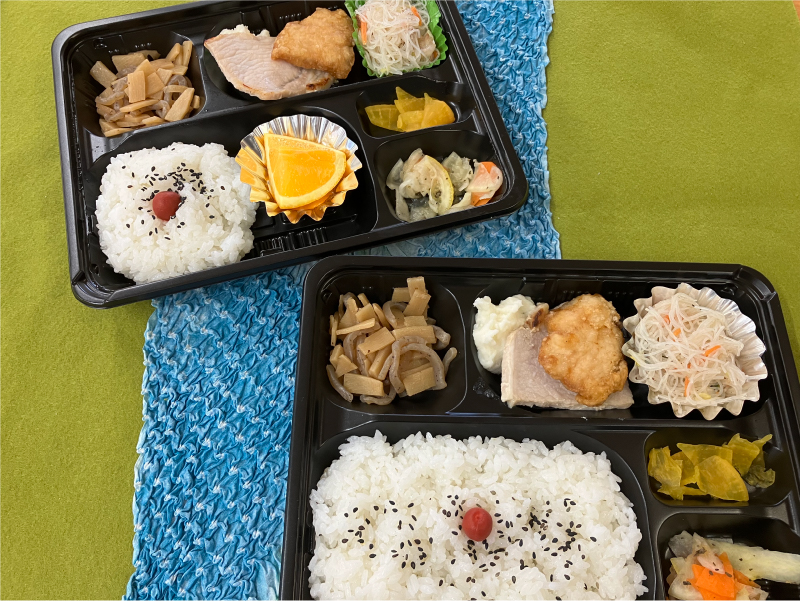 - ・ゴマ塩ふりかけご飯 ・豚の味噌漬け焼き ・鶏胸の甘辛 ・枝豆ポテサラ ・大根と人参のバジル漬け ・竹の子のコクうま ・焼きビーフン
